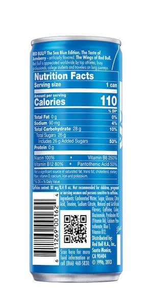 RED BULL GIVES YOU WINGS Reach for the wiiings of Red Bull for energy you can feel. While aiming for great heights during your workday, in your workouts or when gaming, Red Bull Energy Drink is lightly carbonated with a blend of premium ingredients. WHAT'S INSIDE THE CAN Caffeine: Caffeine primarily stimulates cognitive functions in the human body Caffeine (mg) per Single Serving (can): 8.4 fl oz can of Red Bull Energy Drink – 80 mg 12 fl oz can of Red Bull Energy Drink – 114 mg 16 fl oz can of Red Bull Energy Drink – 151 mg 20 fl oz can of Red Bull Energy Drink – 189 mg B-group Vitamins: Contains four essential micronutrients (B3 [Niacinamide], B5 [Calcium Panthothenate], B6 [Pyridoxine HCl], & B12) Taurine: Taurine is an amino acid that is naturally present in the human body and available across many daily diets Real Sugar: Made with real sugar. Quantities comparable to that of an equal sized cup of apple juice Water: Naturally, water is a main ingredient of Red Bull